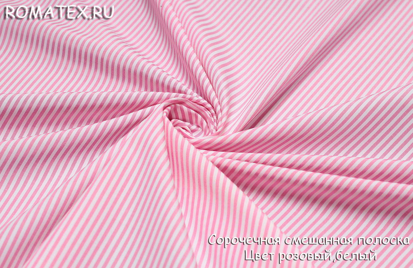 Ткань сорочечная полоска цвет розовый/белый